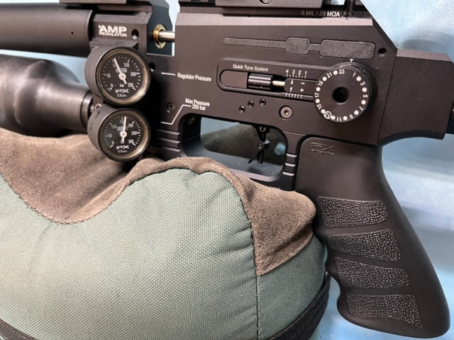This is an FX Dynamic VP 700mm .25 cal that has been customized with two 580cc carbon fiber bottles/ FX Panthera Hunter Double Air Adapter Kit.