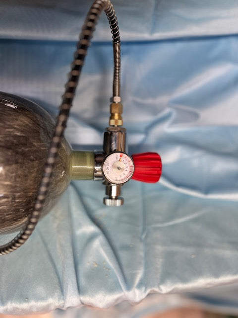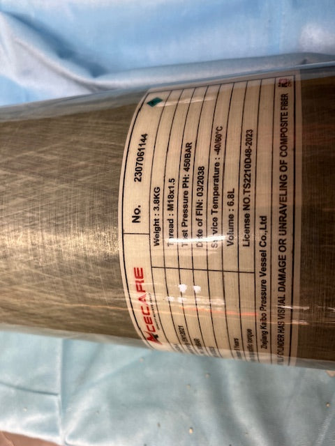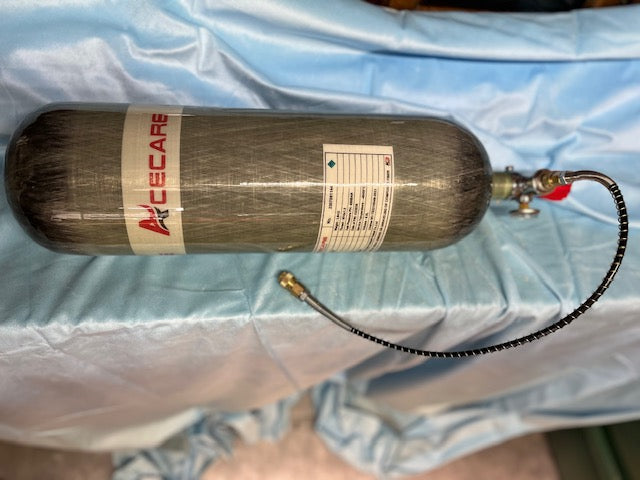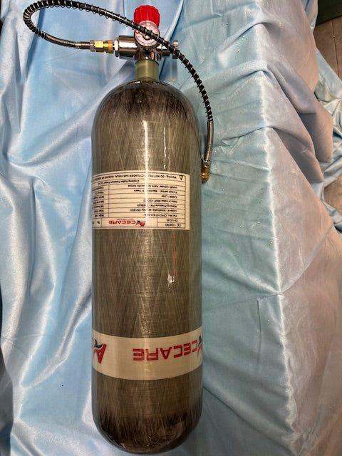 The package also contains a new CE certified 6.8L carbon fiber air tank and a new High pressure water cooled air compressor so you can fill your own tank.