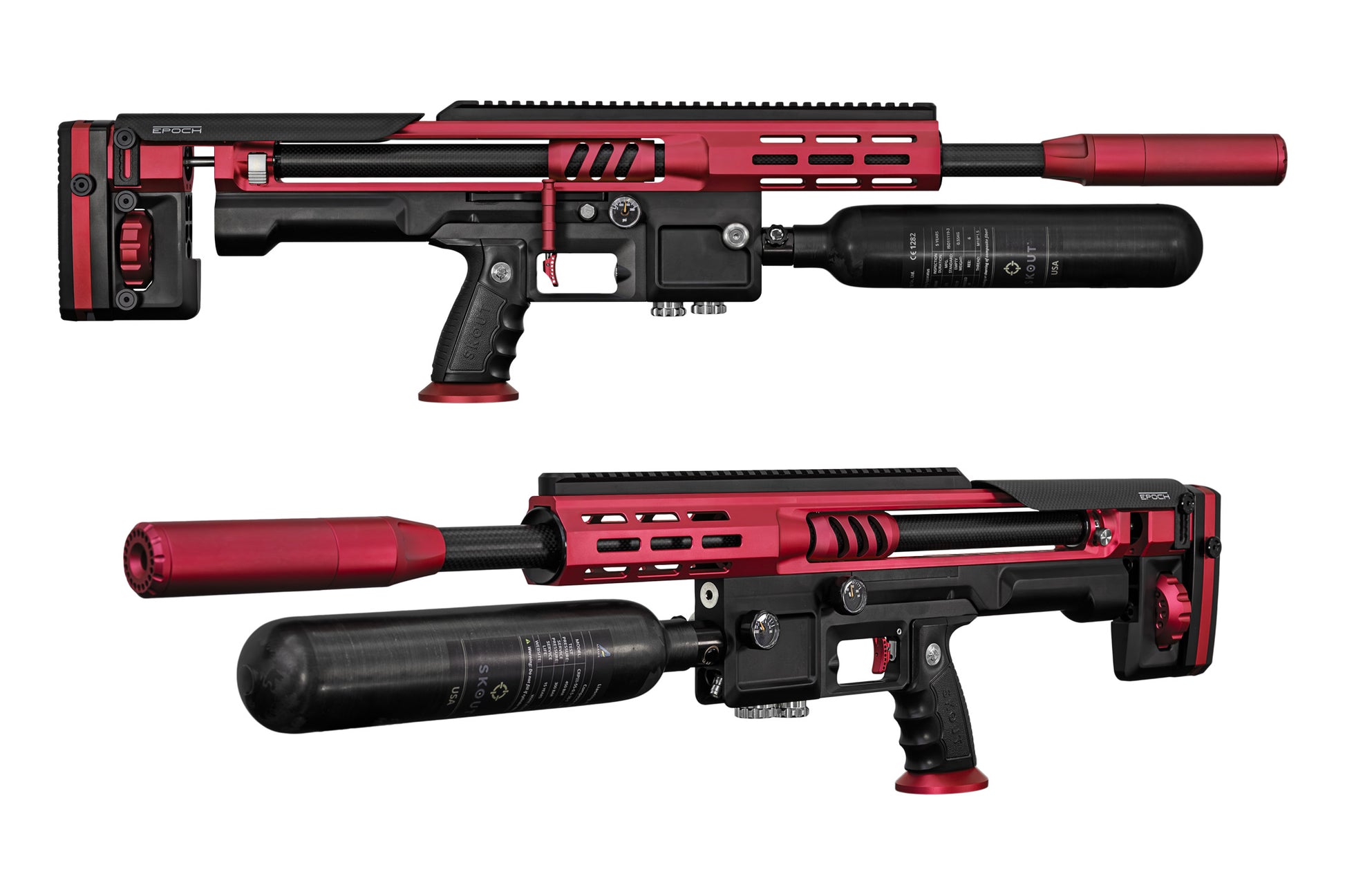 Skout EVOs Red color, with 22 caliber Lothar Walther Poly barrel upgrade & Acra rail upgrade